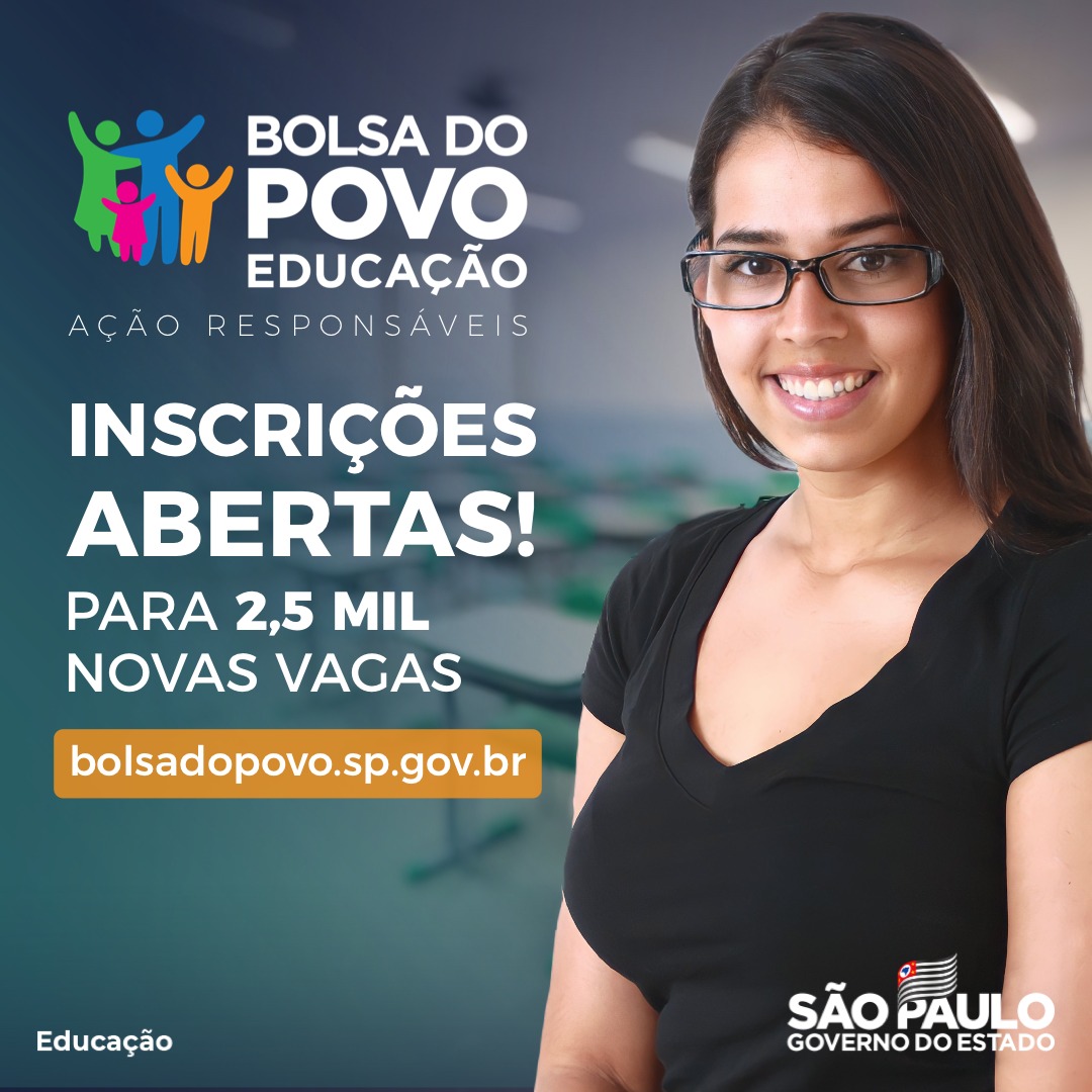 A inscrição pode ser feita pelo site https://www.bolsadopovo.sp.gov.br/. Em seguida, os candidatos passarão pelo processo de ranqueamento pelos critérios de prioridade e de validação das documentações pelas Diretorias de Ensino. Os candidatos que integrarem a ação participarão, antes de iniciarem as atividades, de uma formação, a qual tem previsão de início em 25 de abril.
