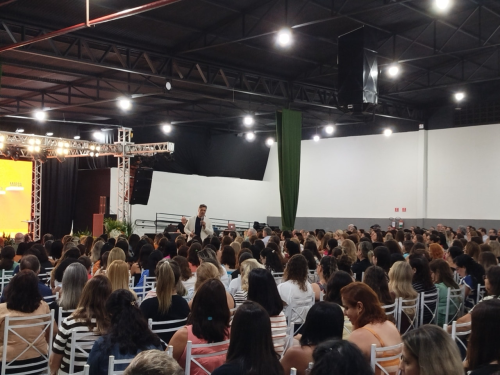 Na noite da última terça-feira, 14 de outubro, os profissionais da rede municipal de ensino participaram de um evento especial em homenagem ao Dia dos Professores. Realizado no Pavilhão da Festa da Menina Izildinha, o encontro contou com a palestra “A Grande Arte de se Reinventar”, ministrada pelo cantor, compositor e empresário Léo Chaves.