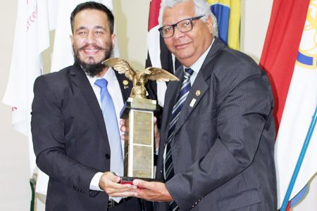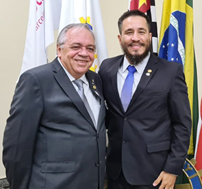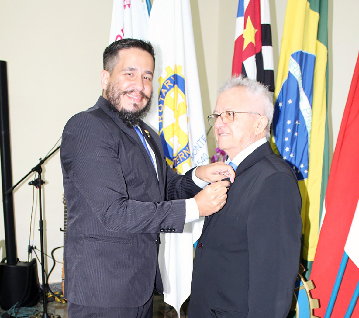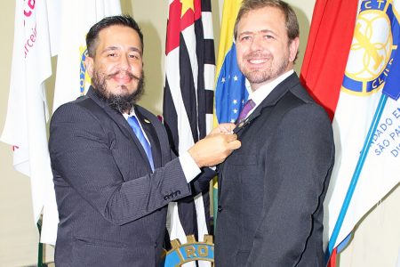 Depois, transmitiu o cargo ao presidente eleito 2022/2023, companheiro Robson Monteiro, colocando o distintivo de presidente na lapela de seu paletó, que simboliza a transmissão do cargo, e fez a entrega do sino e martelo ao companheiro.