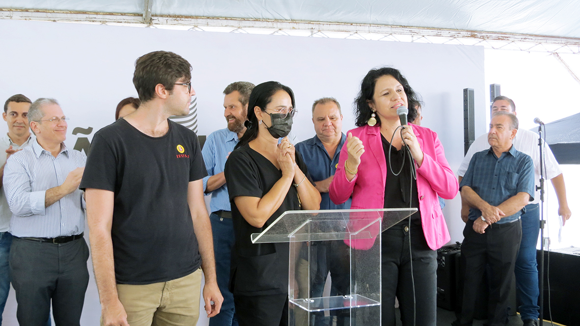 Prefeita Maria Helena Rettondini, diretora de Meio Ambiente, Ana Paula Borges Zilli, e o secretário da pasta, Fábio Nascibem