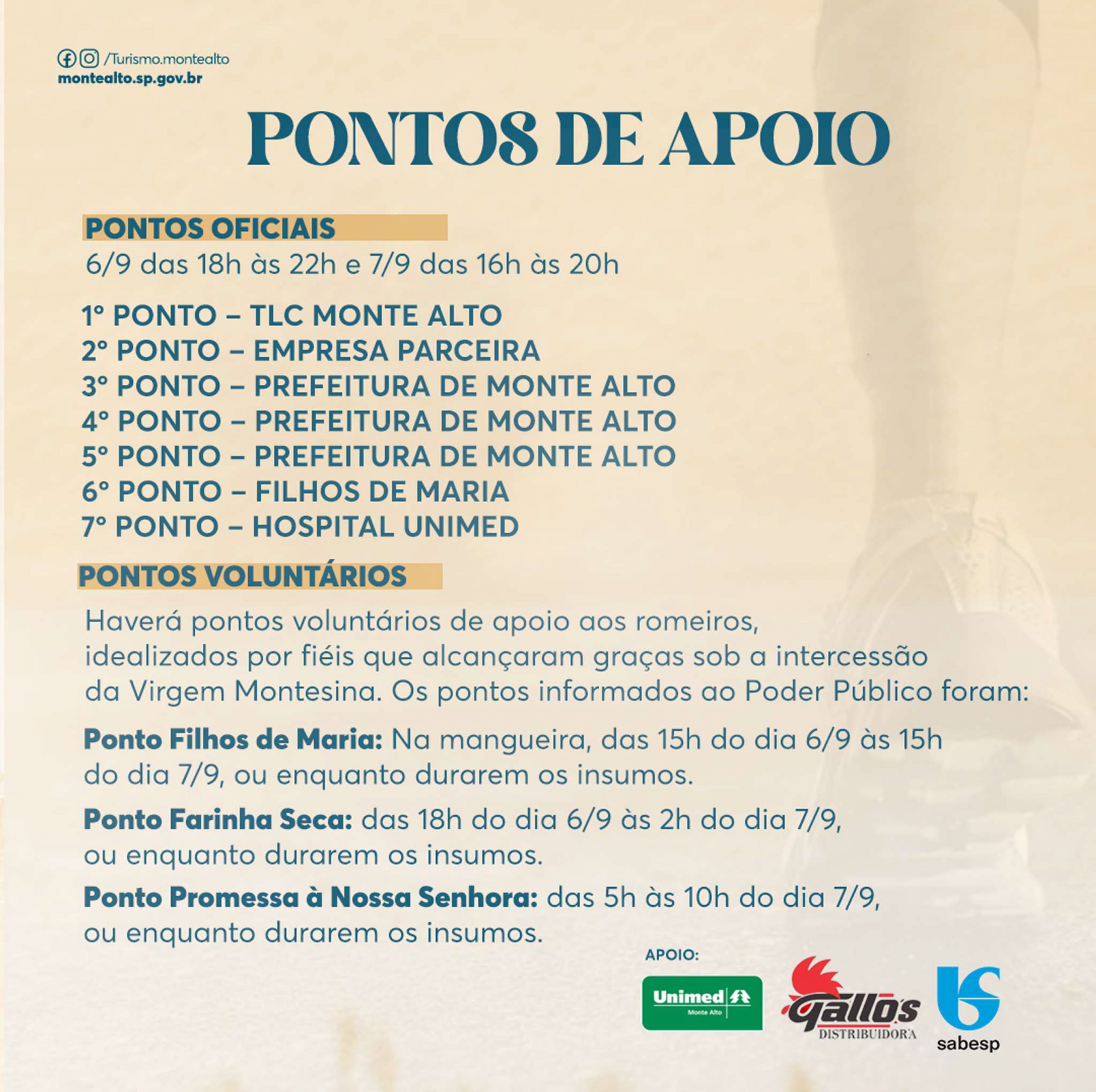 “Estamos nos esforçando para recebermos e atendermos da melhor forma nossos peregrinos. É um momento intenso, onde Monte Alto e toda região se unem pela fé no caminho até o altar da Virgem Montesina”, pontua a prefeita Maria Helena Rettondini que, juntamente com seu vice, Dr. Joaquim, acompanhou toda a estrutura preparada.