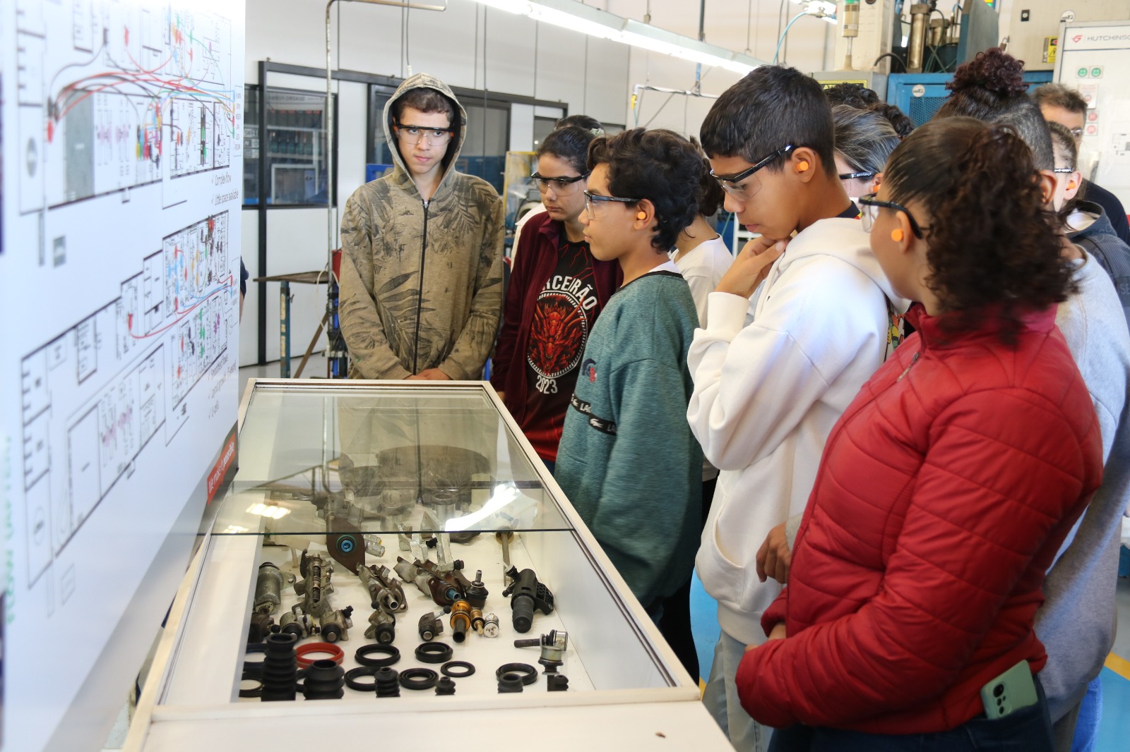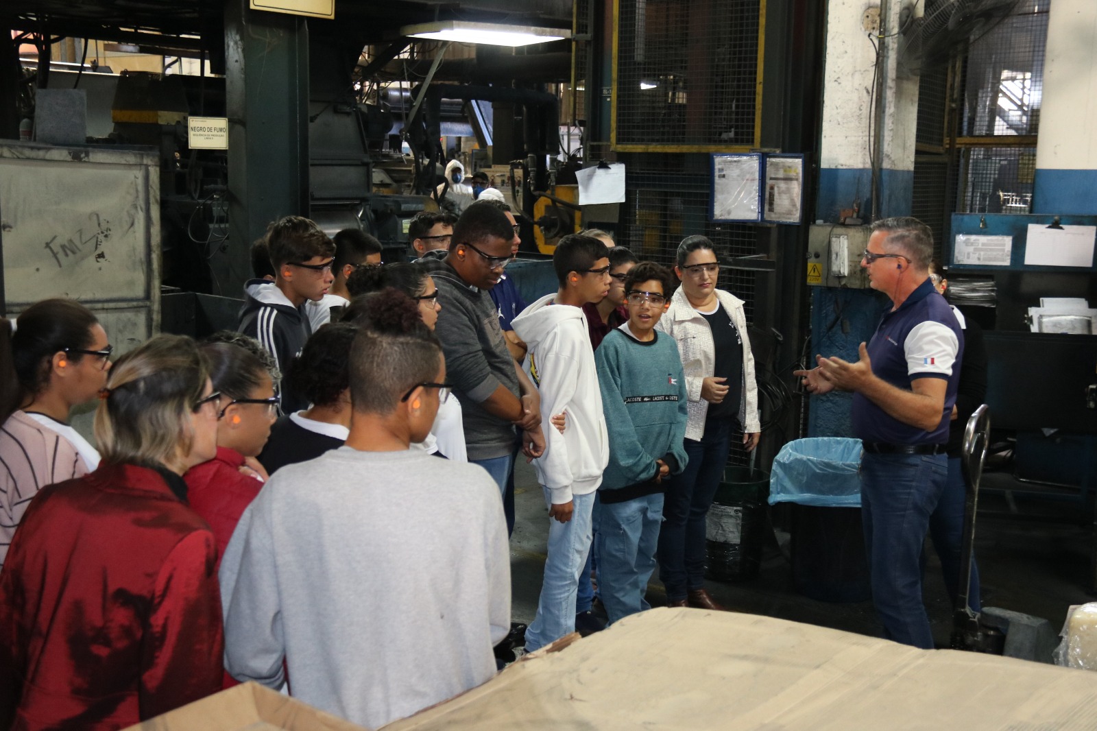 A visita começou pela Planta de Massas, onde estão os compostos químicos. Em seguida, os alunos visitaram as Plantas Retentores, Freios, O’ring, Moldados Montadora e Aerospace, onde conheceram os diversos produtos fabricados na Fábrica 1.