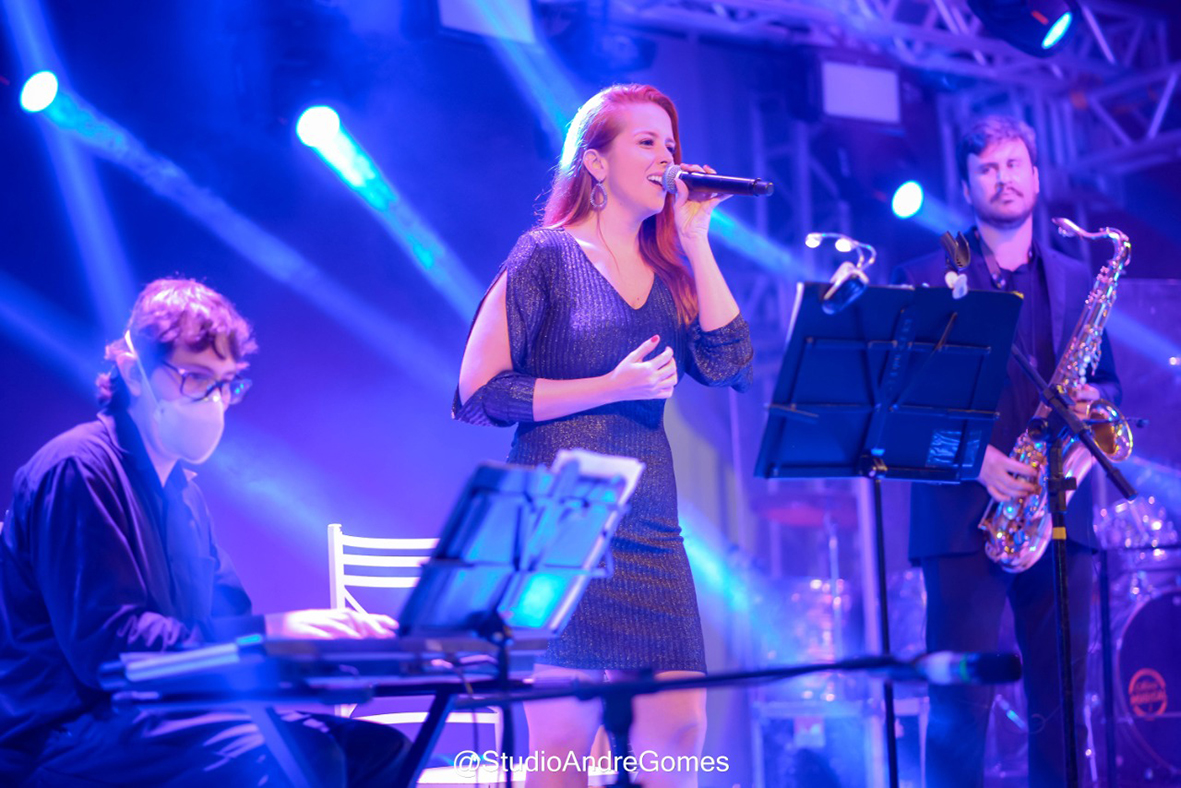 Lígia Sanchini, junto com os músicos Leandro Cunha e Júnior Barbosa, abriu a noite musical abrilhantando a celebração com sua potente e encantadora voz.