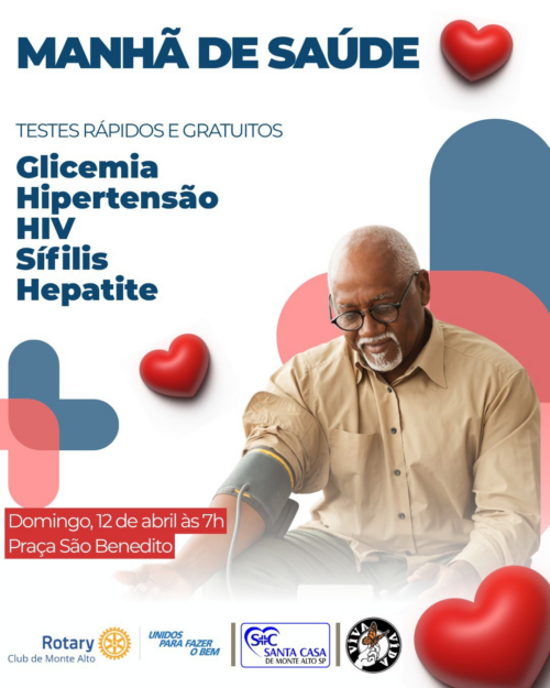 A iniciativa é realizada pelo Rotary Club de Monte Alto, com apoio da Santa Casa de Monte Alto e do Projeto Viva Vida, reforçando a importância do diagnóstico precoce e dos cuidados contínuos.