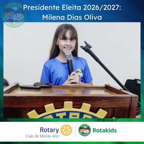 Milena sucederá Ana Amélia Fogagnolo na presidência do Rotakids de Monte Alto, que reúne crianças de 5 a 12 anos em iniciativas voltadas à cidadania, solidariedade e formação de valores. O clube integra o movimento do Rotary International, rede mundial de líderes comprometidos com causas humanitárias e desenvolvimento comunitário.