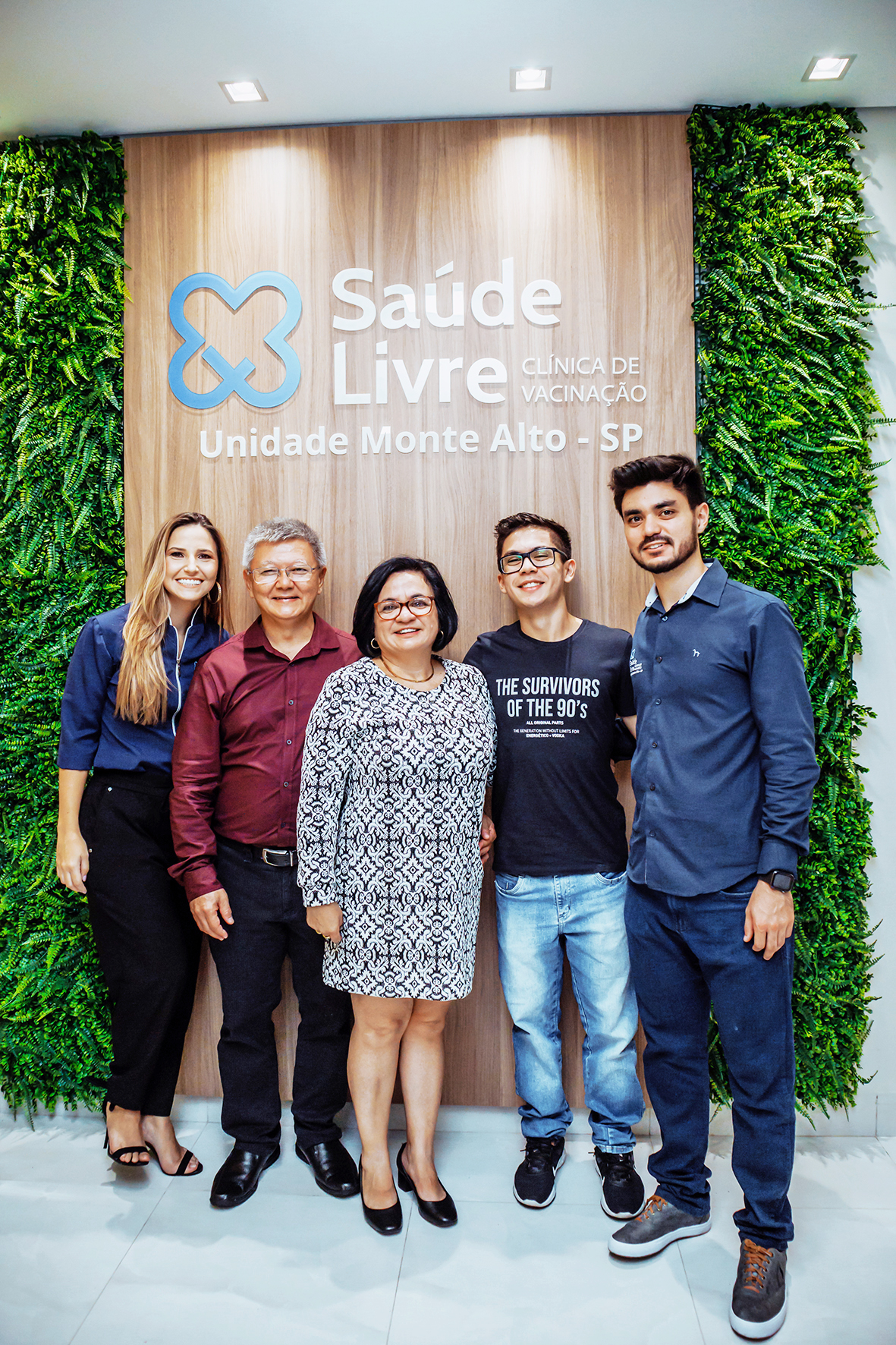 Os pais de Dr. Eduardo, Dr. Akio Otani e Madalena, e o irmão Diego, na inauguração da clínica de vacinação