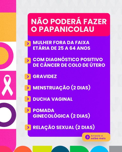O exame de papanicolau é voltado para mulheres de 25 a 64 anos. Não poderão realizá-lo mulheres fora da faixa etária, gestantes, que estejam menstruadas, que tenham feito uso de ducha vaginal, pomada ginecológica ou tido relação sexual nas 48 horas que antecedem o procedimento. Também ficam impedidas as mulheres com diagnóstico positivo de câncer de colo de útero.