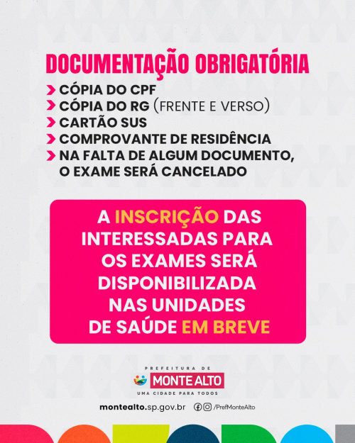 A unidade móvel ficará estacionada no entorno da Praça Central nos dias 29 e 30, das 8h às 16h30, com atendimento gratuito voltado às mulheres. Por dia, estão previstas até 60 mamografias e 50 exames papanicolau.