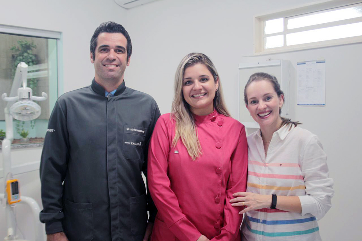 Dr. Luiz Ricardo e as ciurgiãs-dentistas Dra. Tamires Biava Taglieri e Dra. Fernanda Regatieri, que compõe o quadro de profissionais da clínica