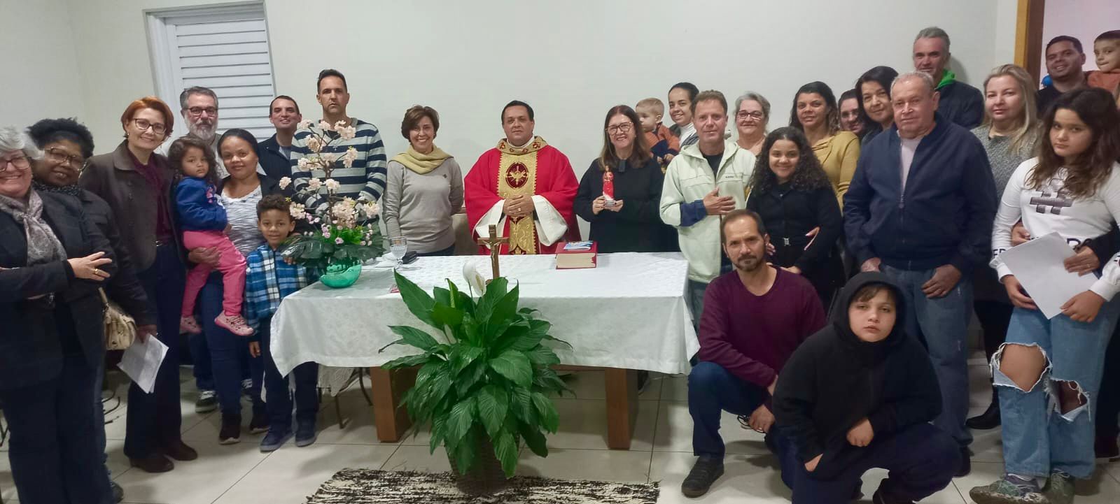 Celebração acontece em residência de moradora do bairro Jardim dos Ipês, presidida pelo Pároco da Paróquia Santuário Nossa Senhora do Rosário de Fátima, Pe. Edson Guiaro