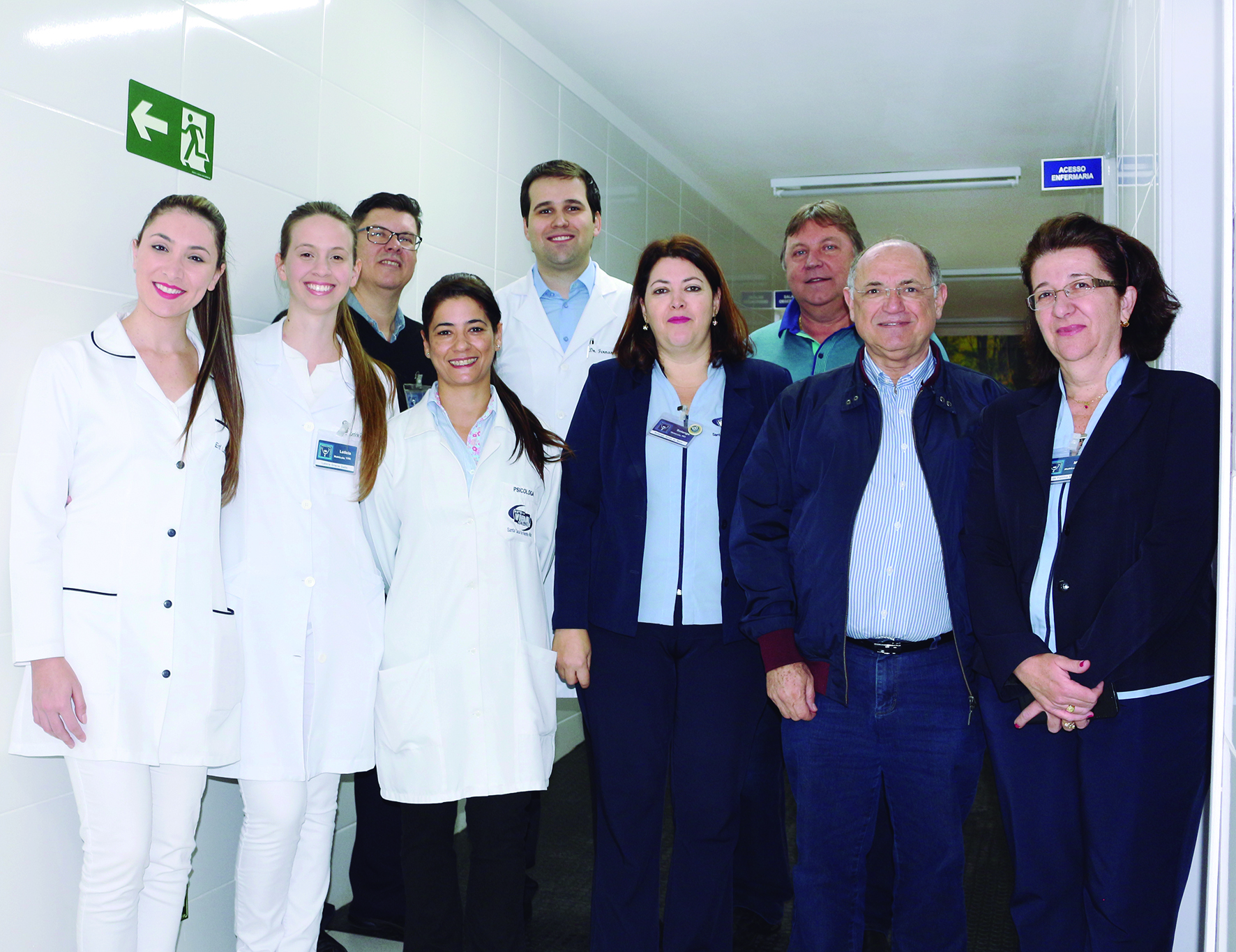 Beto, Dr. Fernando, o diretor Celso Colla, equipe de atendimento do núcleo NEO VIDA e funcionários do setor administrativo da Santa Casa