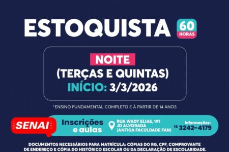 O SENAI Monte Alto, em parceria com a Prefeitura Municipal de Monte Alto, abriu terça-feira, 10 de fevereiro, as inscrições para cursos gratuitos de qualificação profissional. A iniciativa tem como objetivo ampliar as oportunidades de capacitação e inserção no mercado de trabalho para a população do município e região.