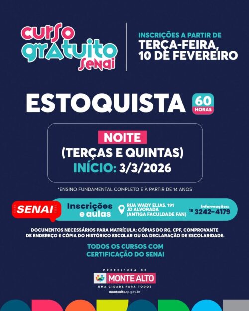 Página Inicial Cultura e Educação SENAI Monte Alto abre inscrições para cursos gratuitos de qualificação profissional 5763F91C-1C43-46F7-88EC-166F0937B927_L0_001-09_02_2026, 18_13_18