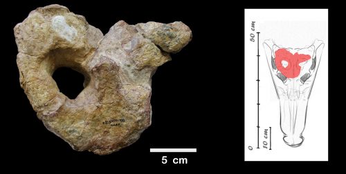 Parte do crânio do espécime encontrado pelos pesquisadores; material fossilizado mede 5 centímetros