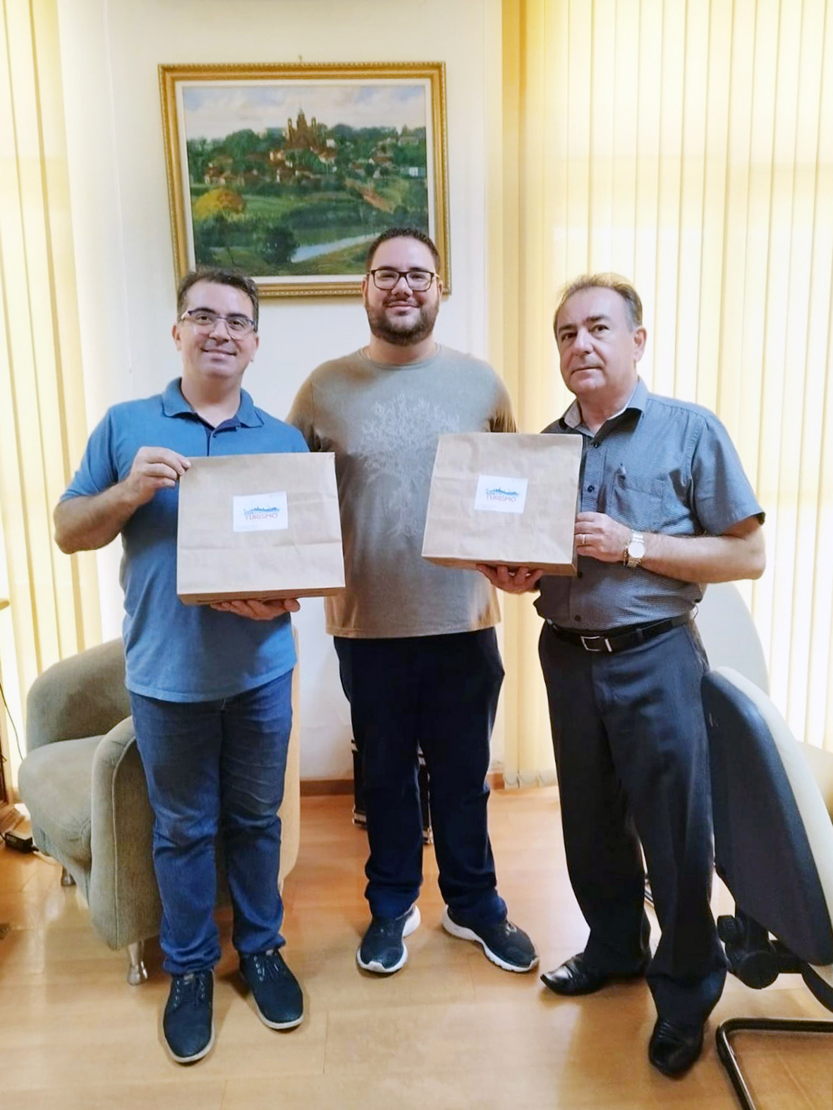 Todos os vereadores receberam um estandarte oficial da cidade com a figura do Dineissauro (destaque), mascote oficial do Museu de Paleontologia; panfletos e pockets com o mapa turístico do município; guia oficial da Rota das Capelas e o livreto exclusivo do Museu de Paleontologia.