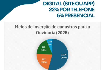 O reflexo do investimento aparece nos números. Em três anos, a Ouvidoria registrou aumento de 121,5% no número de cadastros, alcançando quase 4 mil registros no ano passado. Em 2025, foram contabilizadas 3.731 manifestações, das quais 72% ocorreram por meio digital — seja pelo aplicativo ou pelo site. O atendimento telefônico respondeu por 22% dos registros, enquanto apenas 6% foram realizados presencialmente.